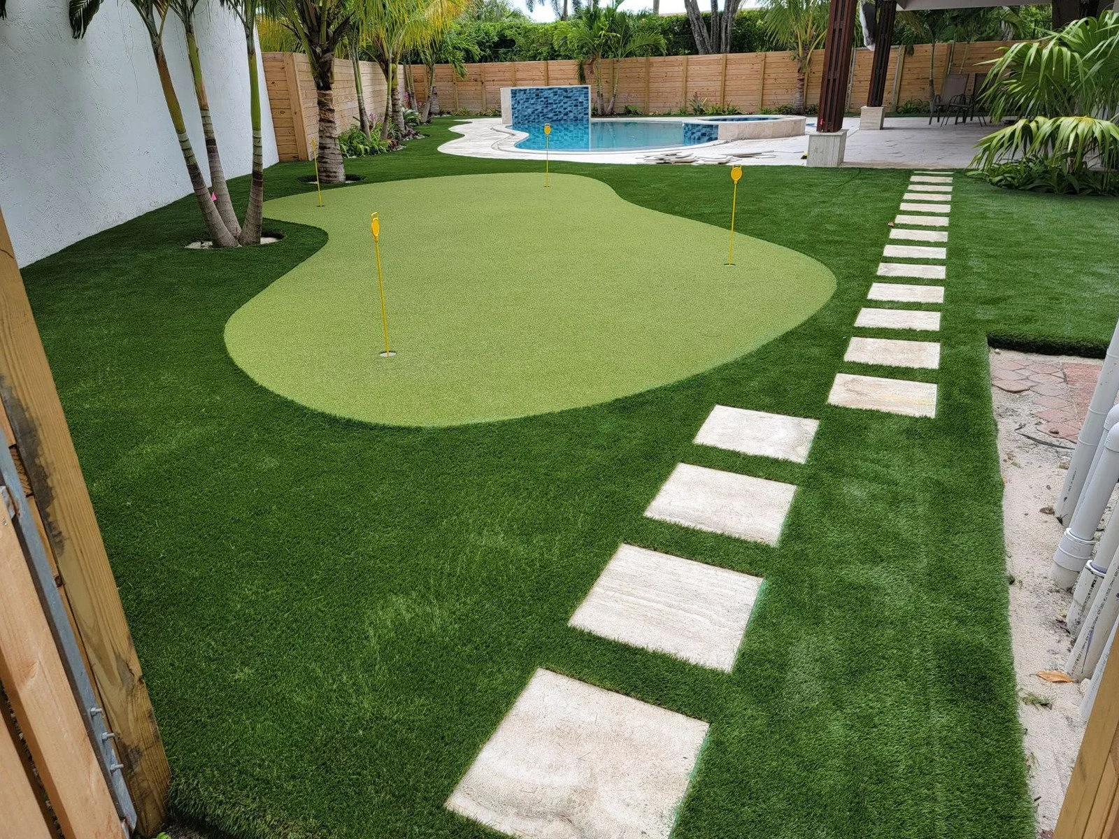Improve your short game year-round and add some entertainment to your outdoor living space with an artificial turf putting green.